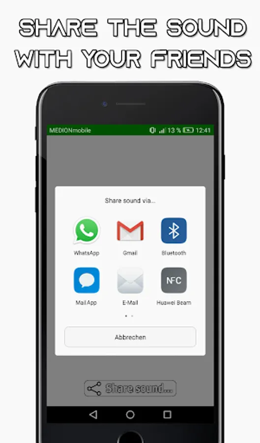 Press the share button on the bottom of the screen and share the sound via WhatsApp etc.