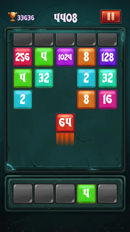 The game shoot the tiles 2 , 4 , 8 , 16 , 32 , 64 ... to merge blocks become: 1024 , 2048 ...