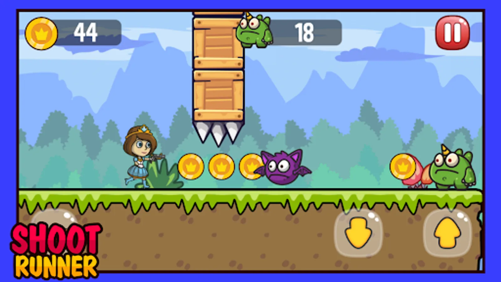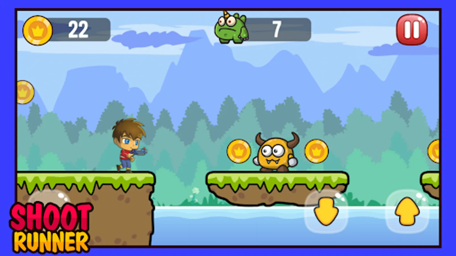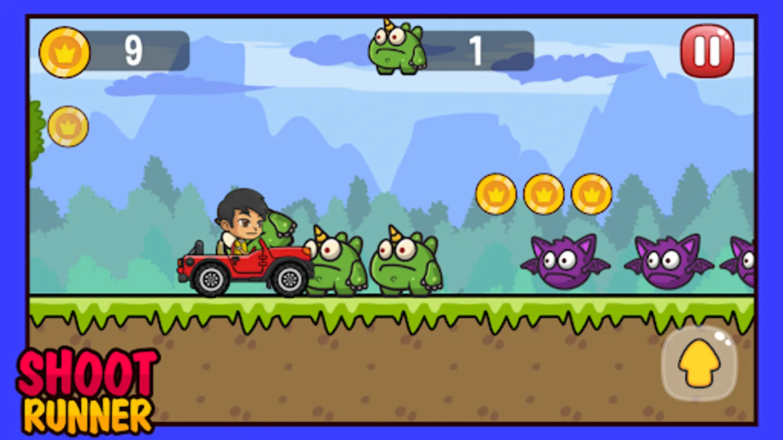 Shoot Runner - Adventure in the jungle world Fighting monsters to survive, Run and Avoid obstacles, get awesome score and challenge your friends in the leaderboard, fight all monsters and collect golden coins