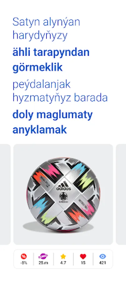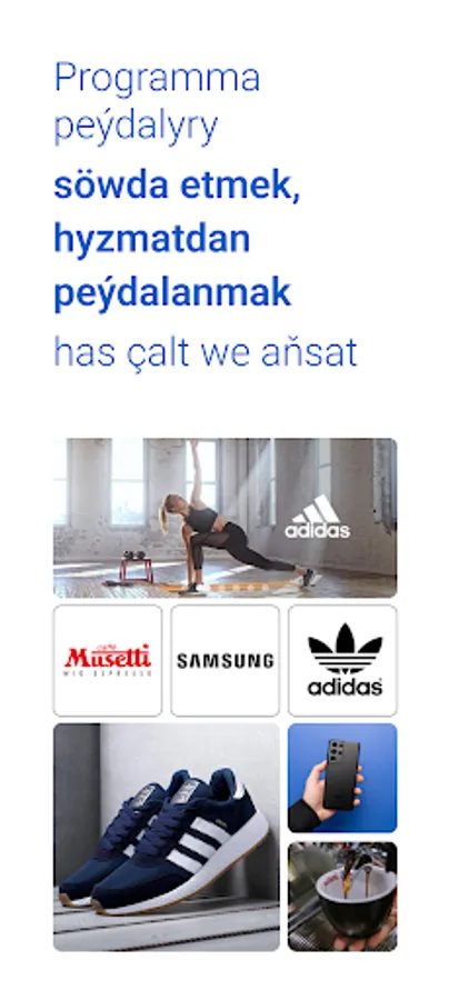Bu programma ulanyjylar üçin niýetlenen. Siz bu programmanyň üsti bilen islän harytlaryňyzy onlaýn sargap bilersiňiz. Harytlar bölümlere, kataloglara, kategoriýalara bölünen, şeýle hem restoranlar, kafelar we hyzmatlar bölümleri bar. Eger siz dükan (restoran, kafe, hyzmat) bolsaňyz onda programmanyň admin bölegini (Google Play-den ýa-da App Store-den ýükläp bilersiňiz) gurnap