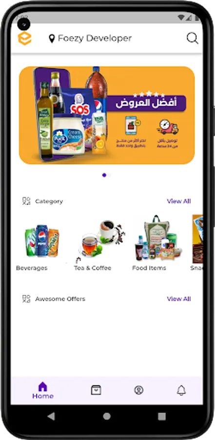 Foezy is an online wholesale grocery products supply chain management company based in Dammam SA, where the merchants can order a wide range of products from their smart device with few clicks. We have developed a user-friendly app for you to solve the problem of manual shopping by smart shopping.