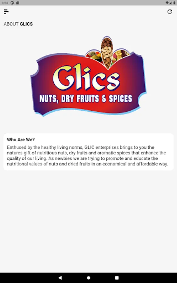 Enthused by the healthy living norms, GLIC enterprises brings to you the natures gift of nutritious nuts, dry fruits and aromatic spices that enhance the quality of our living. As newbies we are trying to promote and educate the nutritional values of nuts and dried fruits in an economical and affordable way.