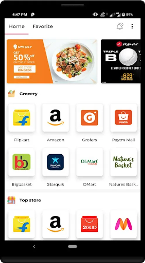 All-in-one Grocery delivery app (online grocery store) has all of India’s top grocery stores in one app. Apps such as Amazon pantry, Grofers, Big basket, Flipkart supermart, Dmart, Reliance fresh, big bazaar, Dunzo, Spencers, bb daily, Natures basket, Patanjali, easy day, star quik, licious, fresh to home, Supr daily, milk basket, deal share, etc. You can access all of these stores in one click from this grocery shopping app, no need to install all of these kirana apps individually. This saves you a lot of time as well as mobile storage!