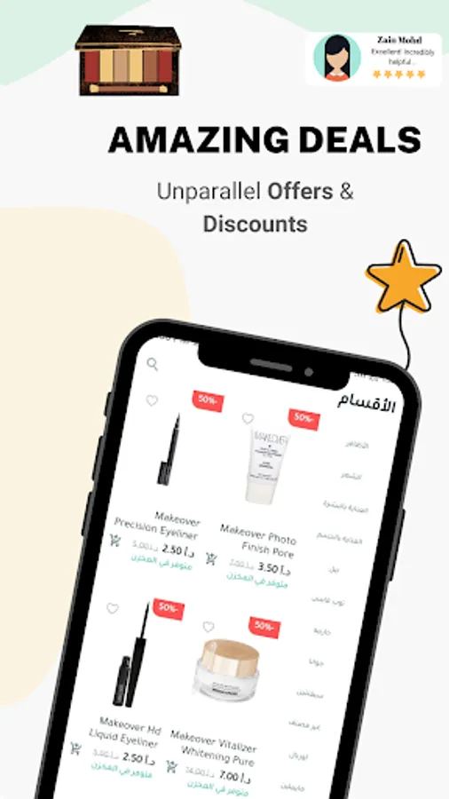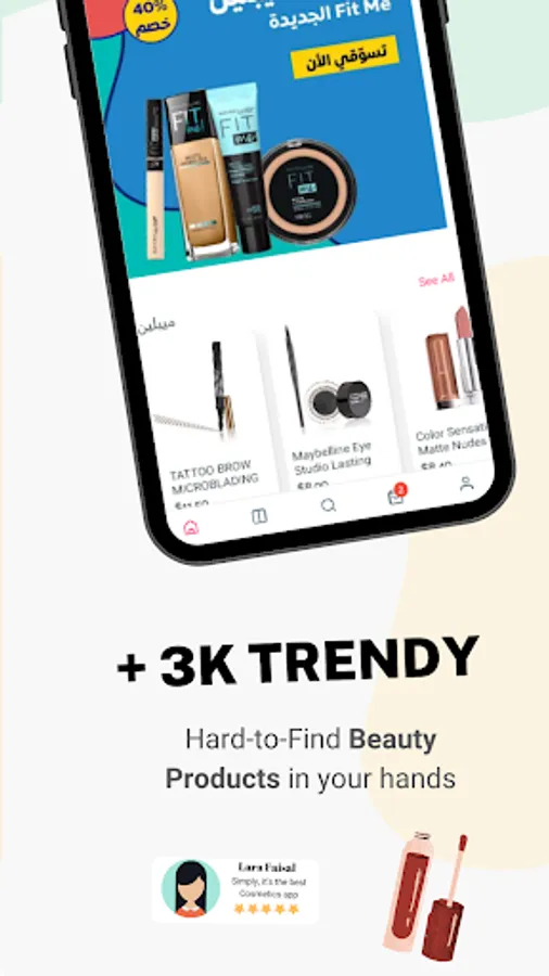 * browse over +3000 beauty products for the following categories: Face makeup, lips, eyes makeup, hair care, skin care, nails care