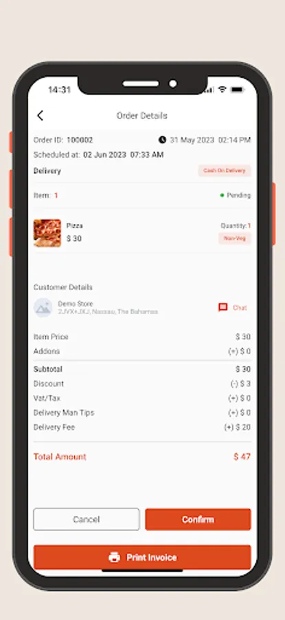Receive, confirm and manage orders with point-of-sale (POS).
