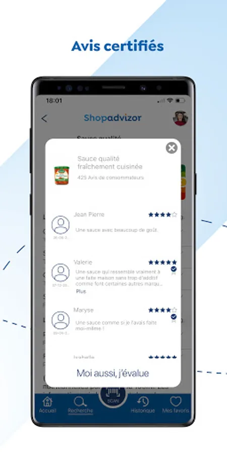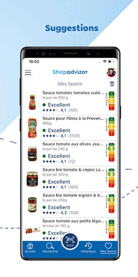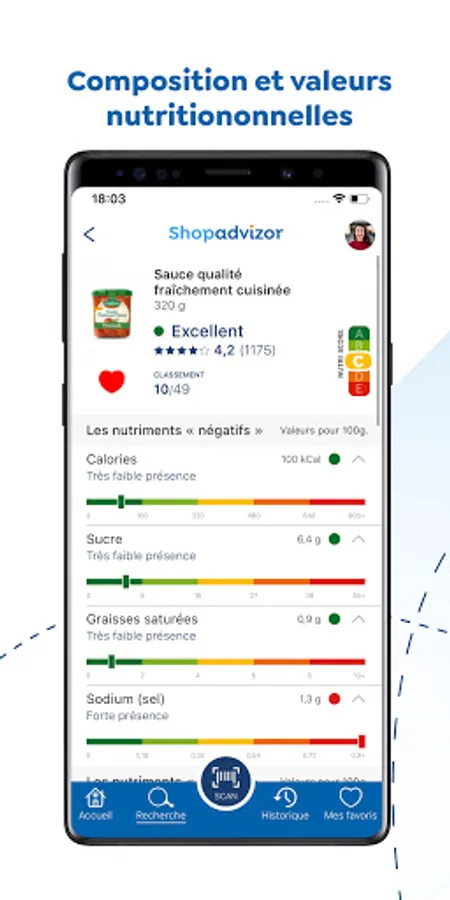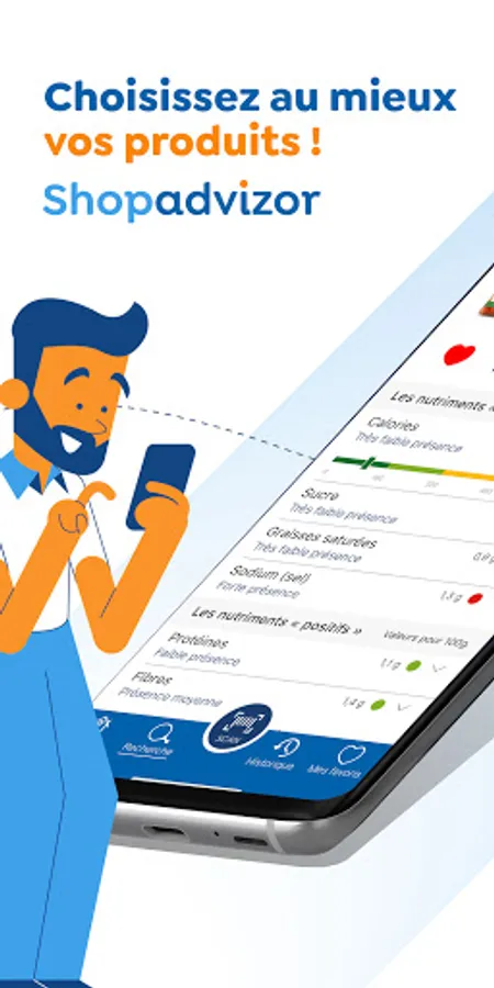 ShopAdvizor is the 1st application to scan the barcode of a product and find out the ratings and reviews left by other consumers on this product. For food products it is possible to quickly find their nutritional values as well as the Nutri-Score.