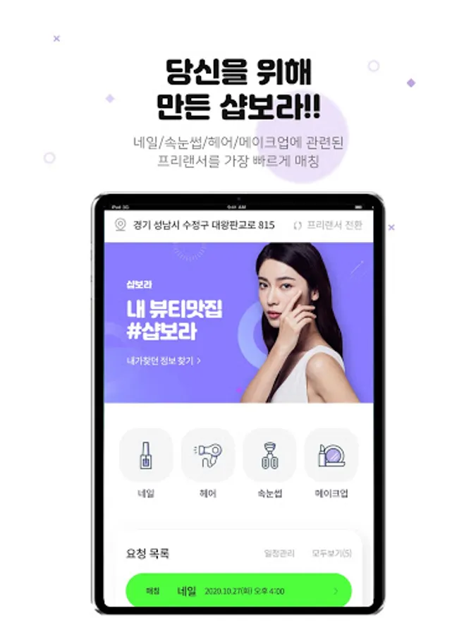 Shop Bora is a brokerage service that quickly matches nail/eyelash/hair/makeup shops with related freelancers.
