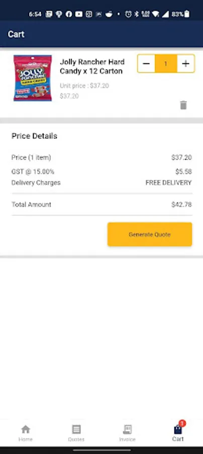 This description highlights the key features of your app, including item browsing, cart functionality, and the ability to generate quotes, making it clear to potential users what they can expect when using your app.
