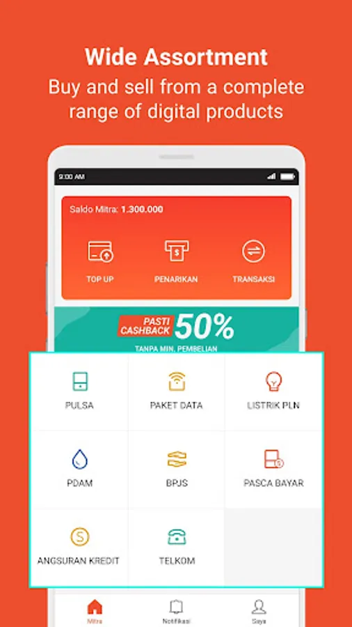 Use the Mitra Shopee app to sell low-priced digital products with the biggest cashback, and manage your online transactions:
