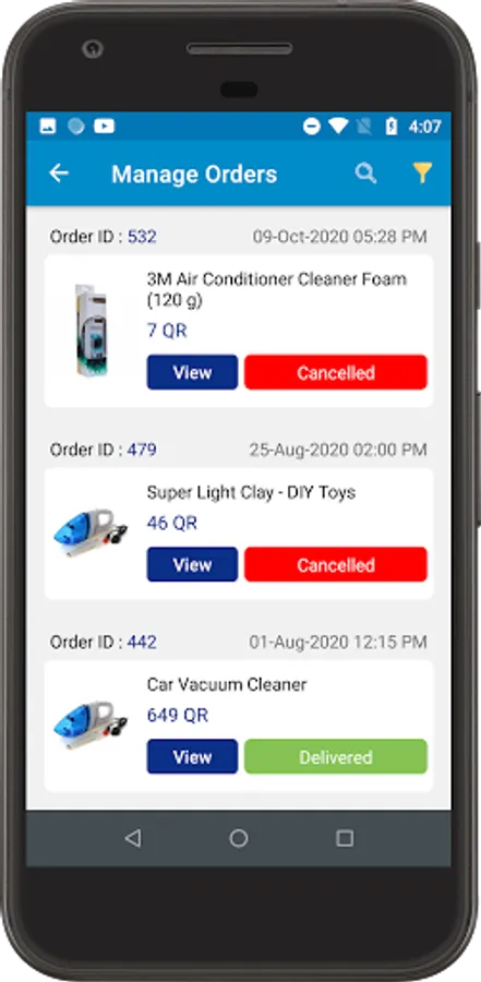5. Seller could (order listing, Search orders and sorting them according differ ways)