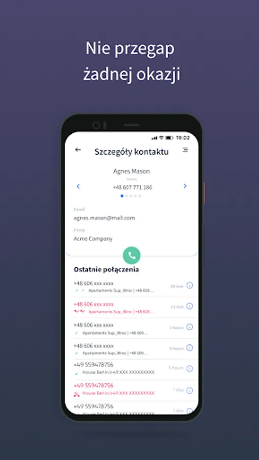 Poznaj dobrze swojego klienta przed rozmową. Przed każdym połączeniem uzyskujesz informacje (notatki, dane o zamówieniach) na temat osoby, która do Ciebie dzwoni. Dzięki temu możesz przejść do ważnych tematów od razu. Zapomnij o przeprowadzaniu długich wstępnych wywiadów.