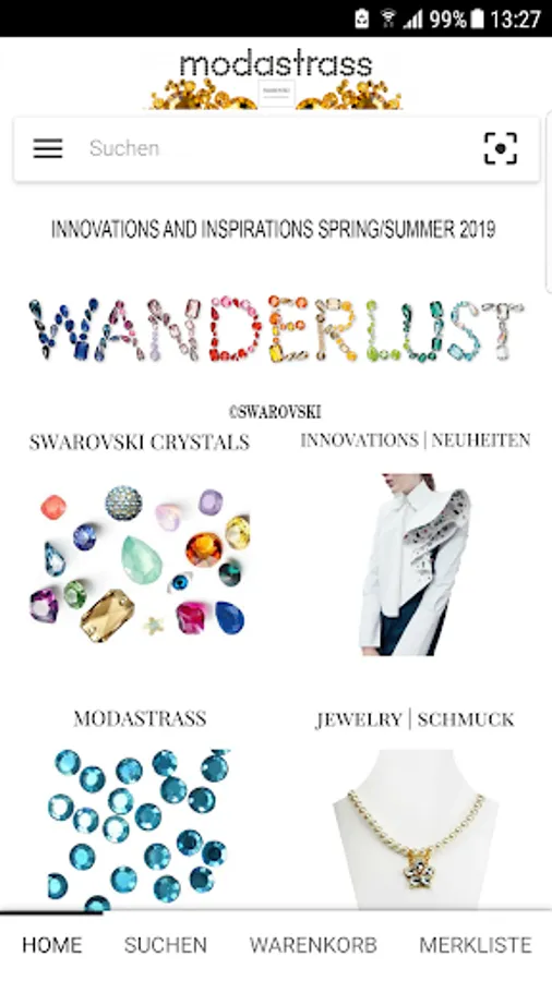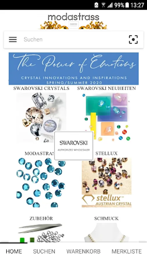 Now also via the MODASTRASS app, with EAN search, QR code & catalog scanner, voucher function and much more. Browse through the entire product catalog and stay up to date with the latest SWAROVSKI innovations and novelty launches!