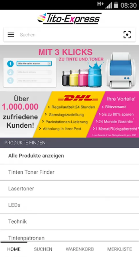 Tito Express supplies for many years now has more than 1 million customers across Europe - quickly and reliably, for example via ebay or Amazon. The experience gained now incorporated in our newly developed app that gives you more benefits.