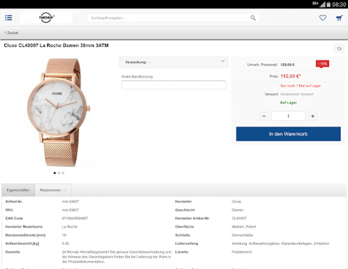 Watches are indispensable today as a fashion accessory. Whether for sport, leisure or at the disco - a cool timepiece arm is required! Now Install the Timeshop24.de shopping app and always stay up to date with regard to the latest trends and styles of your favorite watch brand. Take your time browsing, discovering and Liken. Order watches and jewelry when you want and where you're currently on. Receive push notifications about special offers specifically for our app customers.