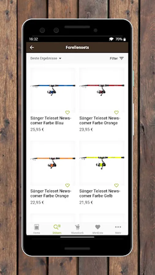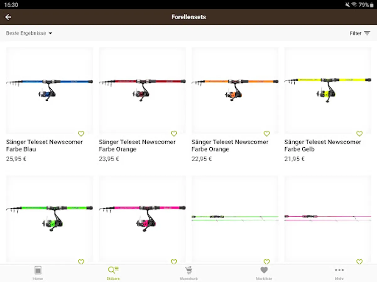Get now the app with all the latest offers on the subject of fishing: whether complete turnkey Angel sets, fishing reels, fishing rods or technical accessories such as bite indicator or any type of fishing baits like Pirk, Twister, Wobblers or boilies. In our store you will find the right offer in the best brand quality: Whether Daiwa, Cormoran, DAM, Balzer, Spro or Abu Garcia - we have your fishing brands in its range.