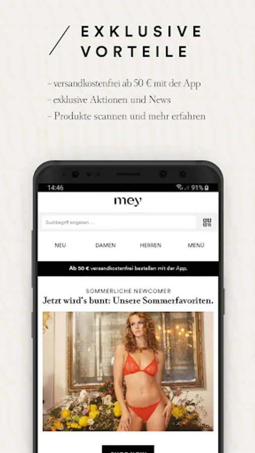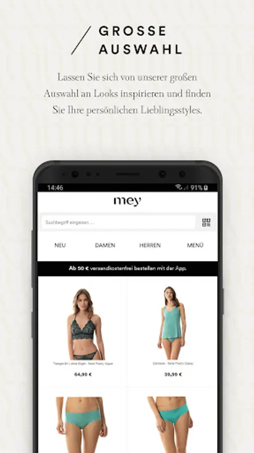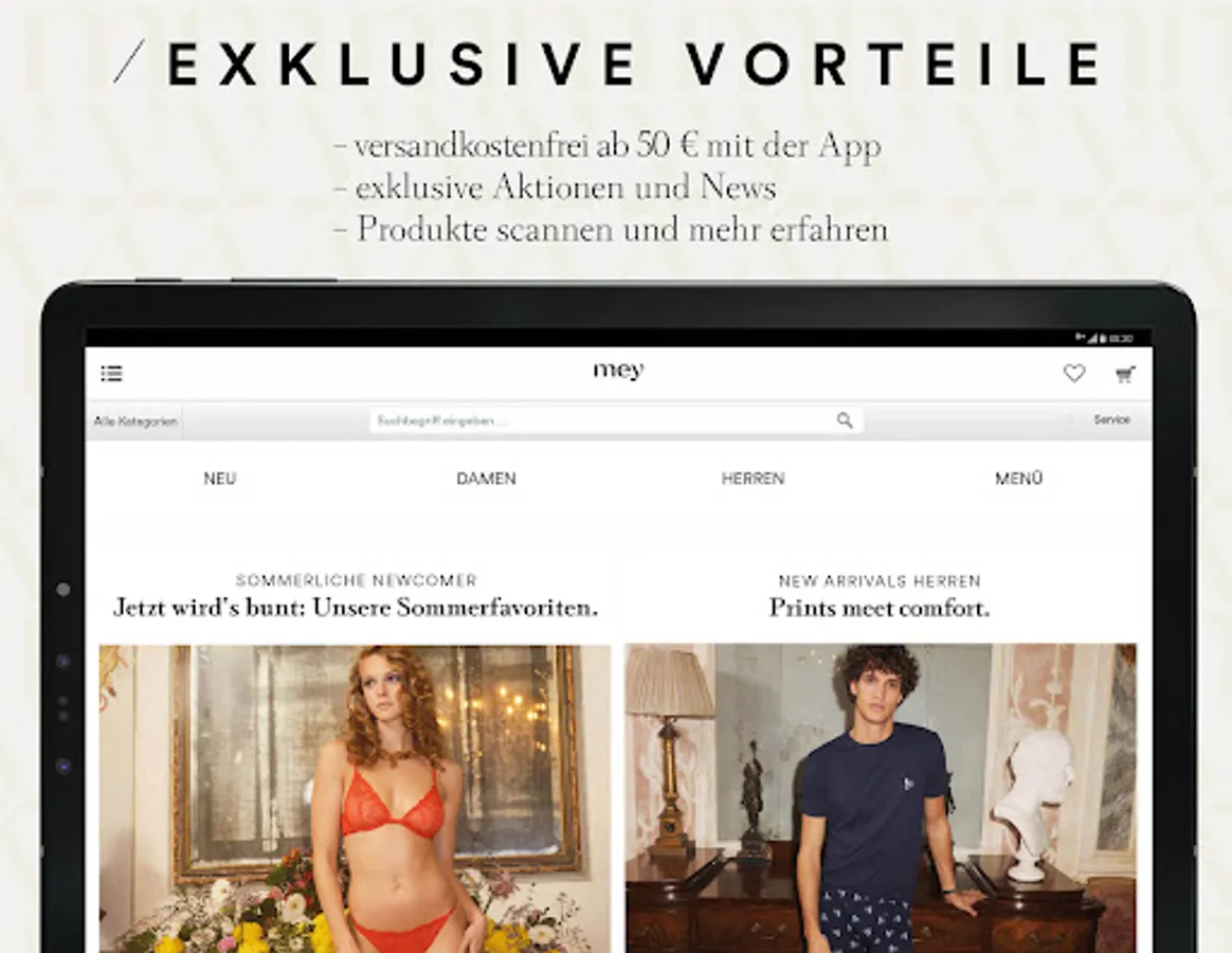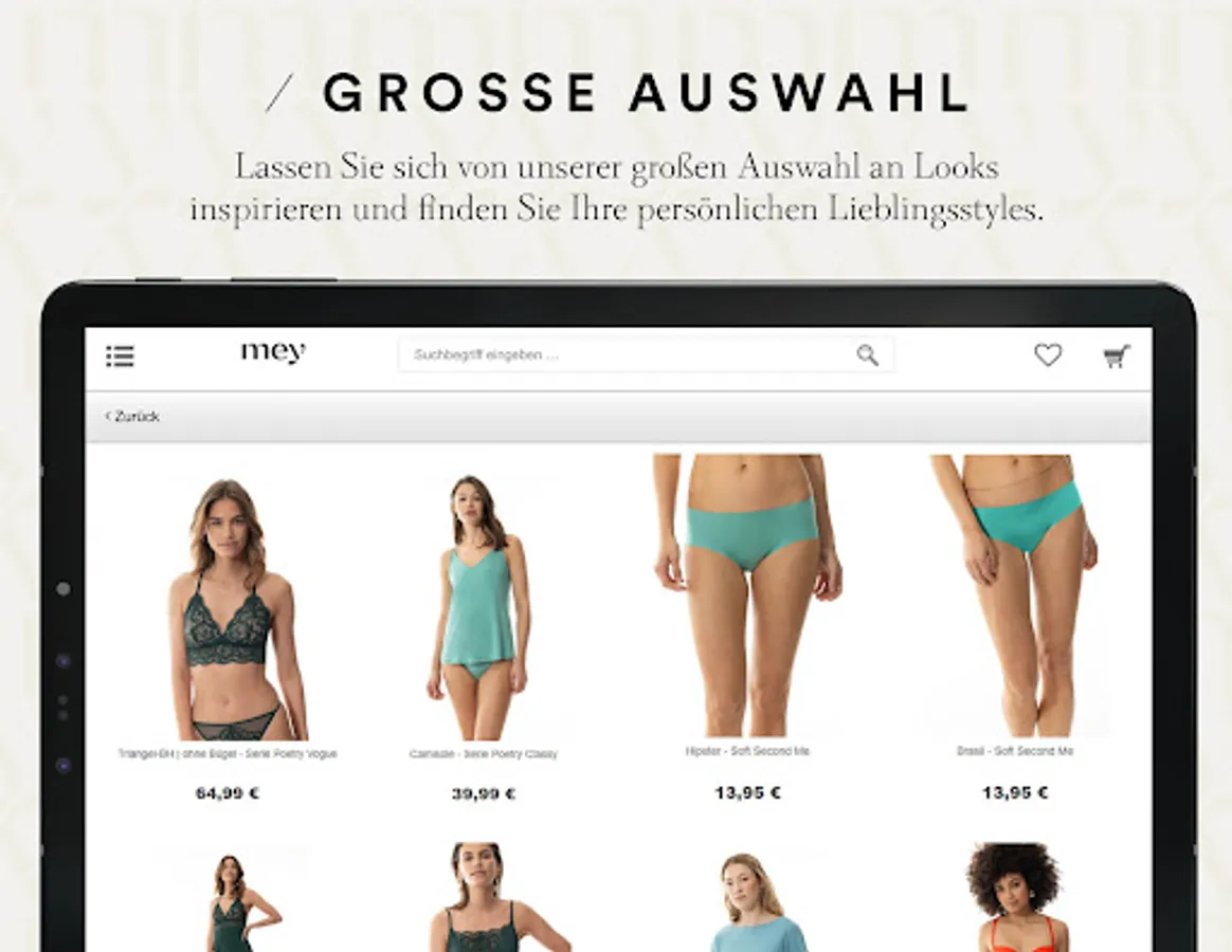 Time for exploration - the mey world in one app. Stay up-to-date and discover the latest collection from mey. Shop lingerie, underwear and fashionable home and nightwear 24/7. Underwear for men and women, manufactured in our own factories in Europe, meet the highest quality standards.