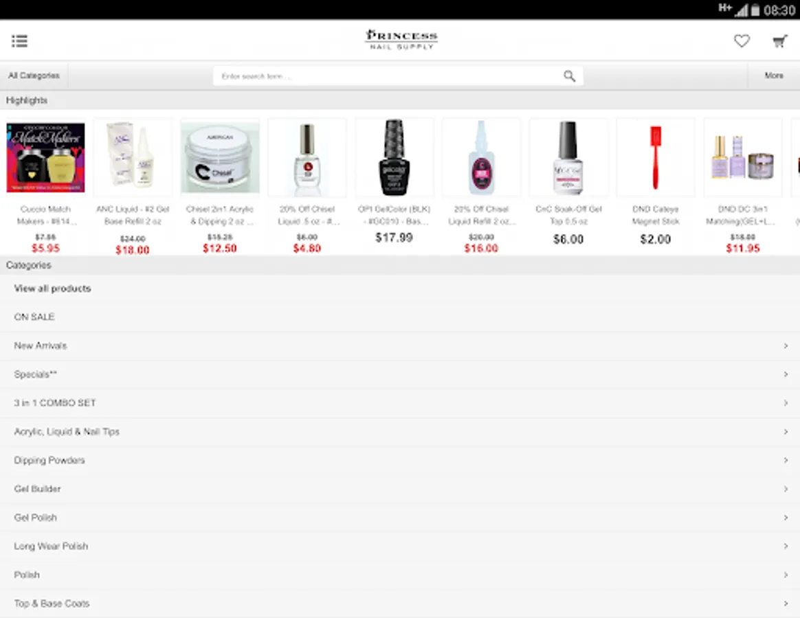 Select, shop and save with the Princess App. Princess is a master distributor of nail products to the beauty industry. We are proud to be an authorized dealer for companies like OPI, CND, Chisel, SNS, Harmony, ibd, China Glaze, DND, ANC, Wave and many more. Gel Polish, Dipping Systems and Nail Polish are just a few categories of the 12,000 individual items in-stock. Orders are shipped the next business day via FedEx ground. Payment methods include VISA MasterCard, Discover, American Express, Apple Pay, Amazon Pay, and PayPal. 72,000 Sq. Ft. professional sales store and distribution warehouse is located in Raleigh, NC. Excellent selection, Service and Price are why we are known as the industry leader for nail products.