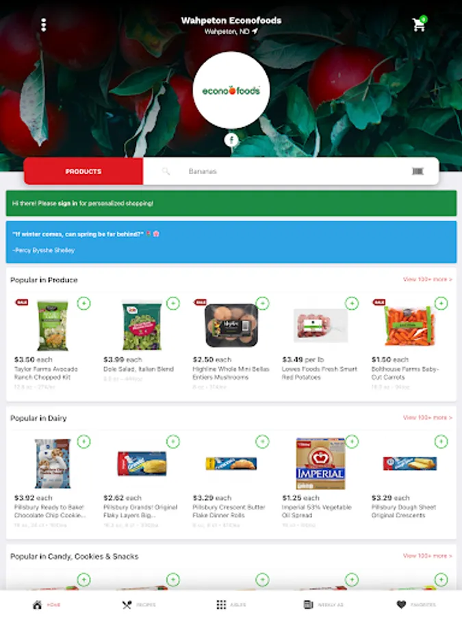 Our award-winning grocery app makes grocery shopping a breeze with quick access to our weekly circular, an easy-to-use product search, detailed product details and labeling, tasty recipes, and family meal planning tools. What could be better than that?