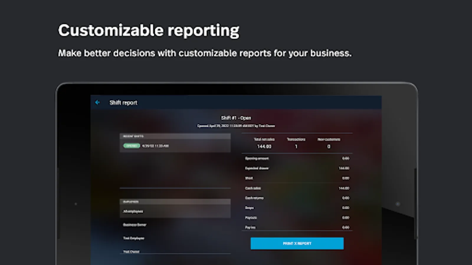 • Manage your business in your BackOffice, the one-stop dashboard that connects to your Register.