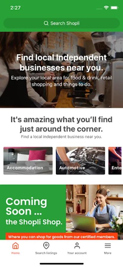 The Shopli App lets you discover local independent businesses near you. You can easily explore a nearby area such as a city or town or quickly search for food & drink, shopping and things to do.