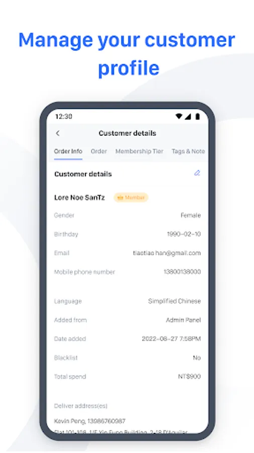 Customer Management — Provide a complete customer list, help view and edit your customer information