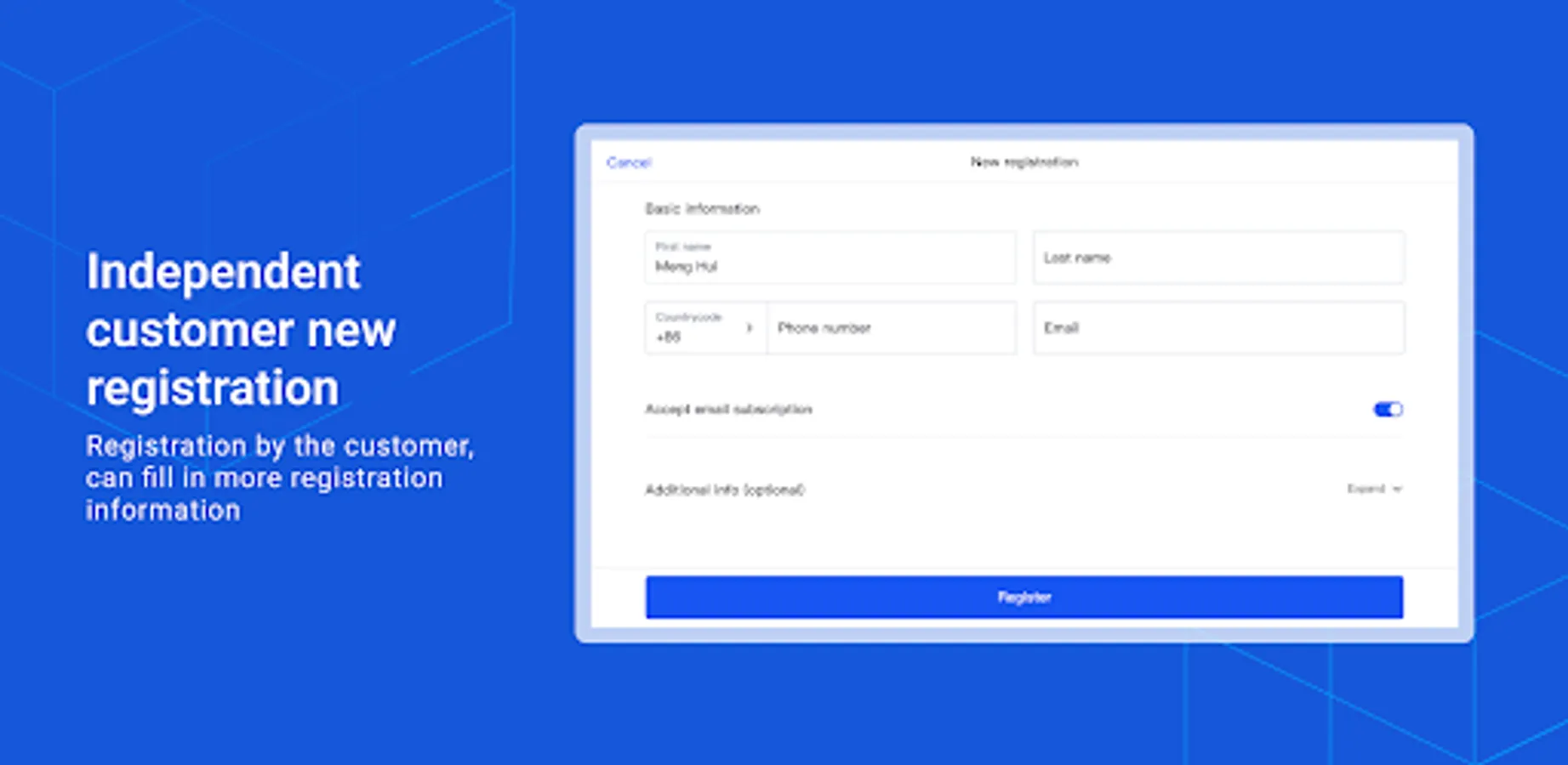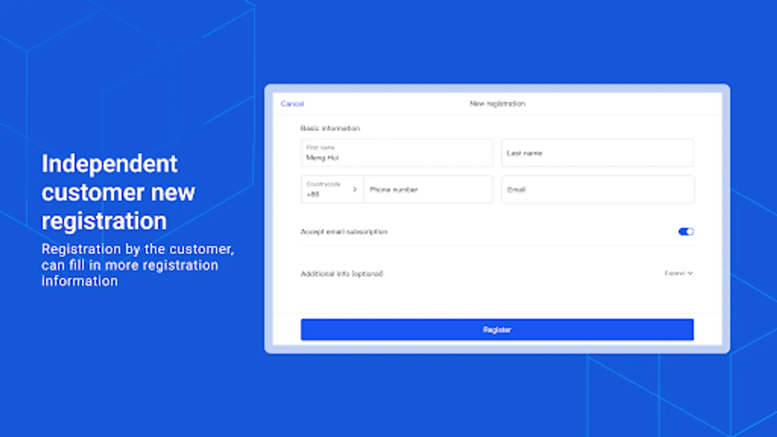Enable customers to independently complete registration on the customer display screen device, enhancing the completeness of offline customer information collection.