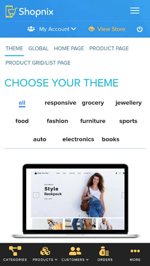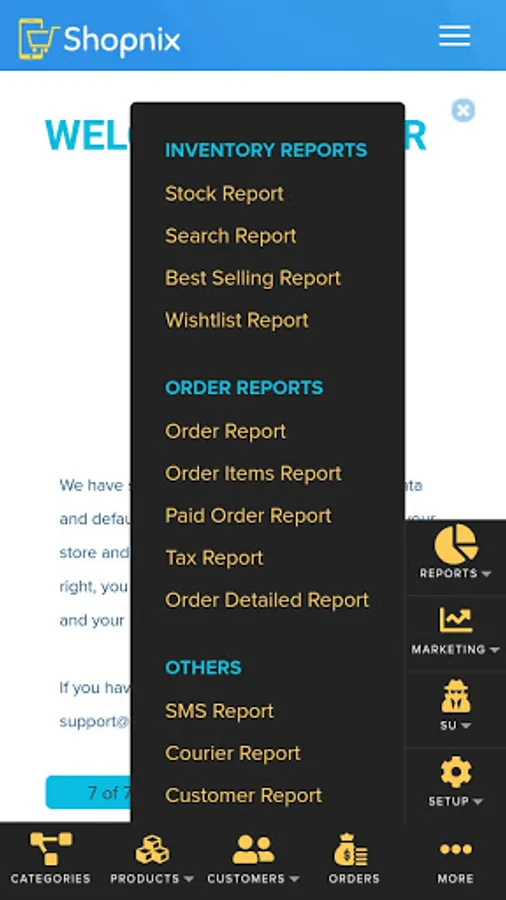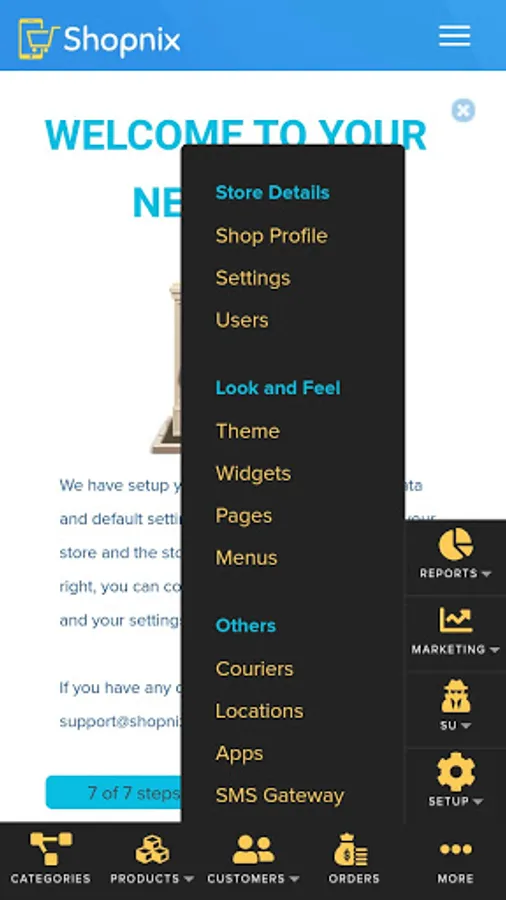 Shopnix Admin helps in managing Products,Product Pricing, Orders,Design & Themes ,User, Reports and many more...