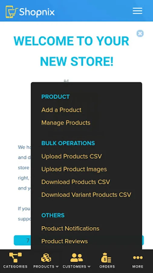 It's designed in a way to provide customers a more friendly platform to manage their Online Shopping Store with easy accessibility. Just login with your e-mail ID and password and there you go.To know more about how to use Shopnix Admin, we have Youtube videos available and Shopnix wiki that shows you step by step with Pictures and that is fun.