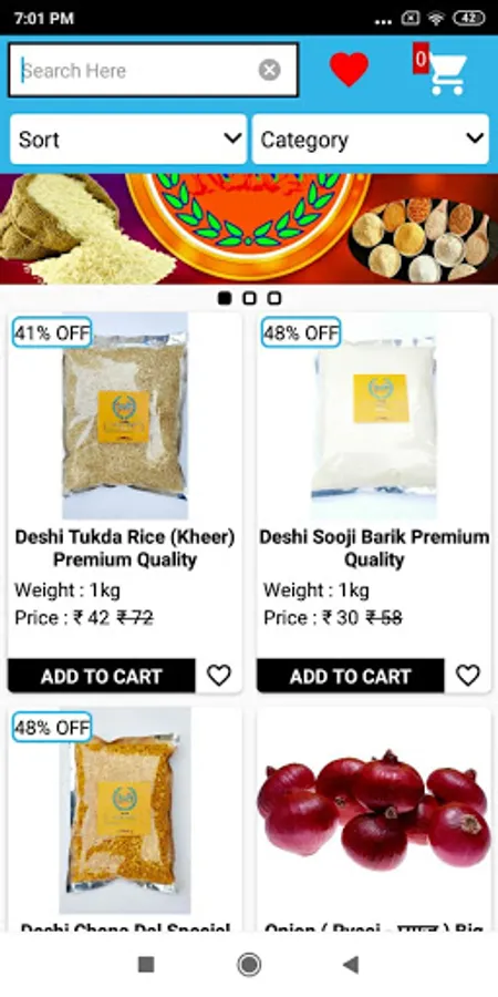 A user can shop for the products of DESHI Brand. These products are like Fresh Green Vegetables, Grocery like Pulses, Rice, Flours etc.