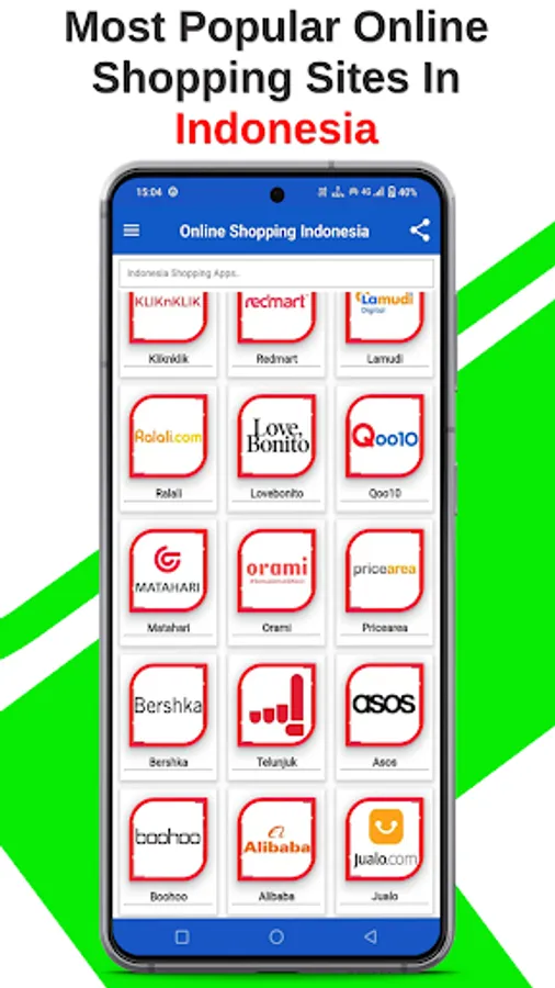 Indonesia Online Shopping Store Among the millions of offers from the greatest Indonesia Shopping App, Online Shopping for the Latest Clothes & Fashion, the Indonesia Online Shopping app is an All in one Shopping Indonesia App where you can locate Top Items at the Best Price. with Indonesia Online Shopping Store You can visit your preferred Indonesia Online Shopping Site by just opening the Indonesia Shopping App and clicking on it. This is an all-in-one solution that eliminates the need for you to memorise Indonesian Shopping website names on Indonesia Online Shopping Store.