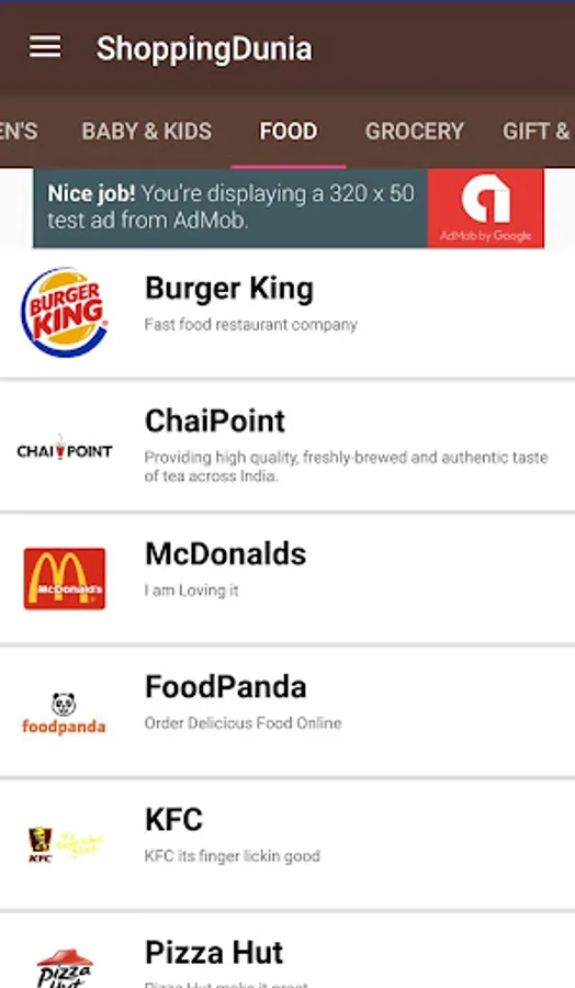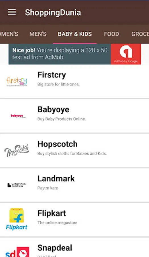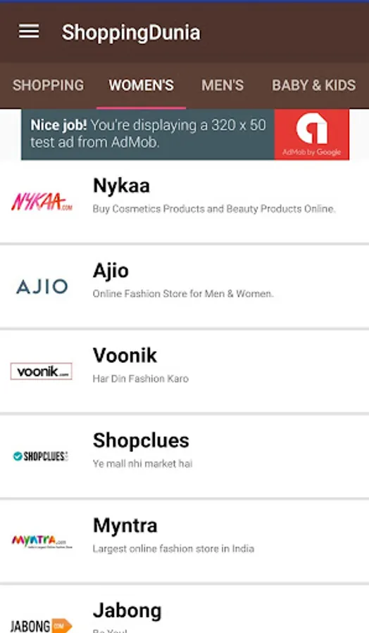 Shopping Dunia features top brands like Amazon, Flipkart, Paytm, Snapdeals, Myntra, Jabong, Yepme, Ebay, Homeshop18, Purplle, Nykaa, Ajio, Voonk, PrettySecrets, Firstcry, Babyoye, KFC, McDonalds and more.