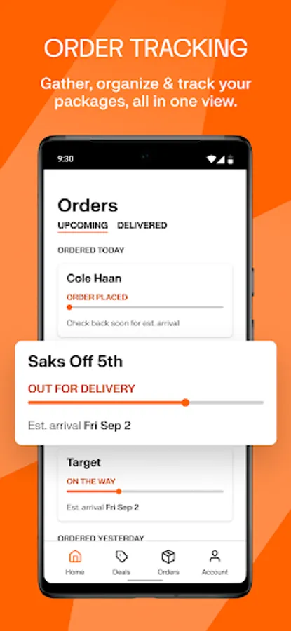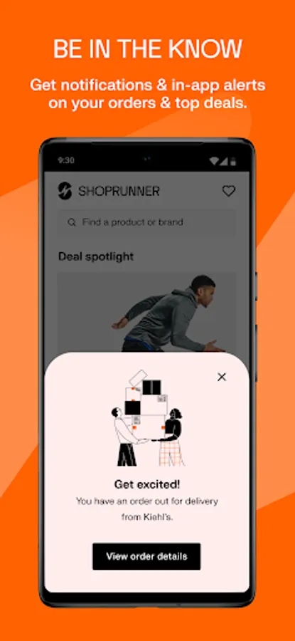 Track orders easily with the ShopRunner app. With a connected Gmail account, online orders from hundreds of stores will be gathered, tracked, and organized in the app — even those not ordered using ShopRunner. Think of it as a personal package tracker that provides alerts on order arrivals, delivery date changes, retailer/carrier contact information, and more.
