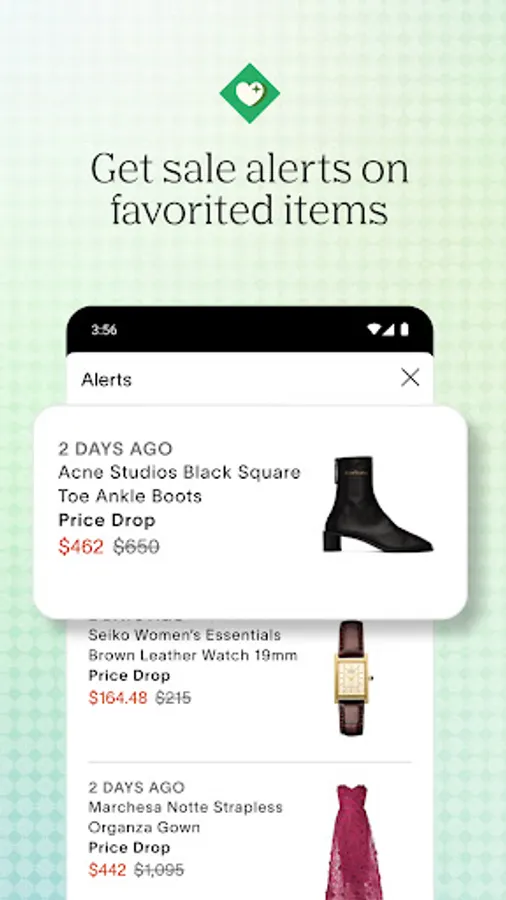 Sale Alerts, On The Spot: Favorite the styles you love—from clothes to shoes to decor—to get sale alerts. When the price drops, we’ll let you know.
