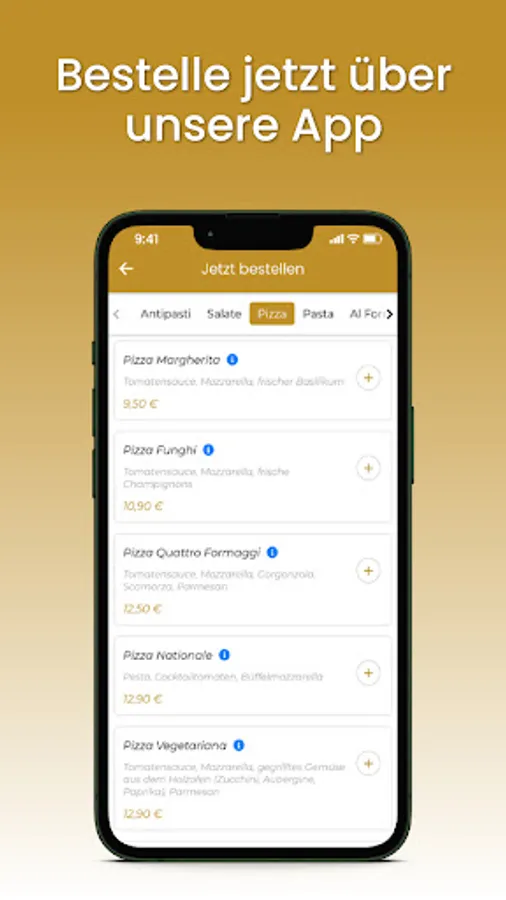 Super easy to order food online with our app. Just click on the ORDER NOW button and off you go. You have a huge selection of delicious dishes such as pizza, pasta, antipasti and much more. Your order will be freshly prepared for you.
