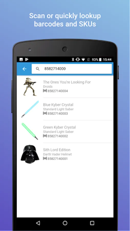 * Quickly search or scan SKUs or barcodes for inventory checks