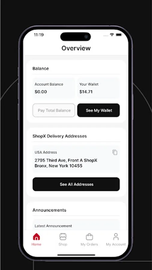 ShopX is designed to make the shopping experience as seamless as possible. Simply browse products from your favorite online retailers and place your orders. Once we receive them, you'll be able to track them all through our app. See all the information about your orders, including the status and estimated delivery date, right on the app. Plus, you can make payments through our secure platform, making the entire process convenient and hassle-free.