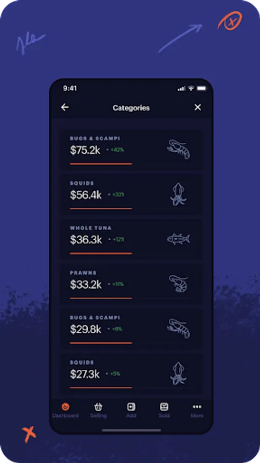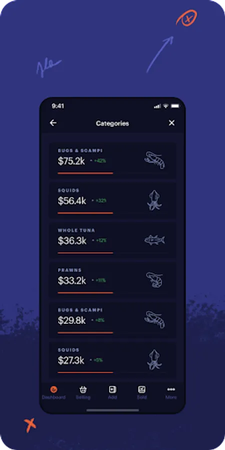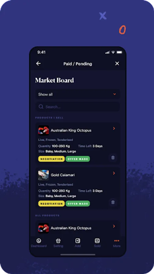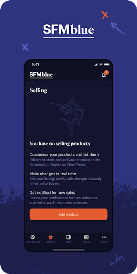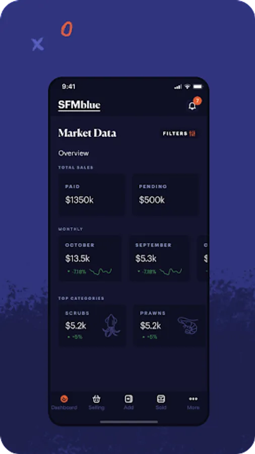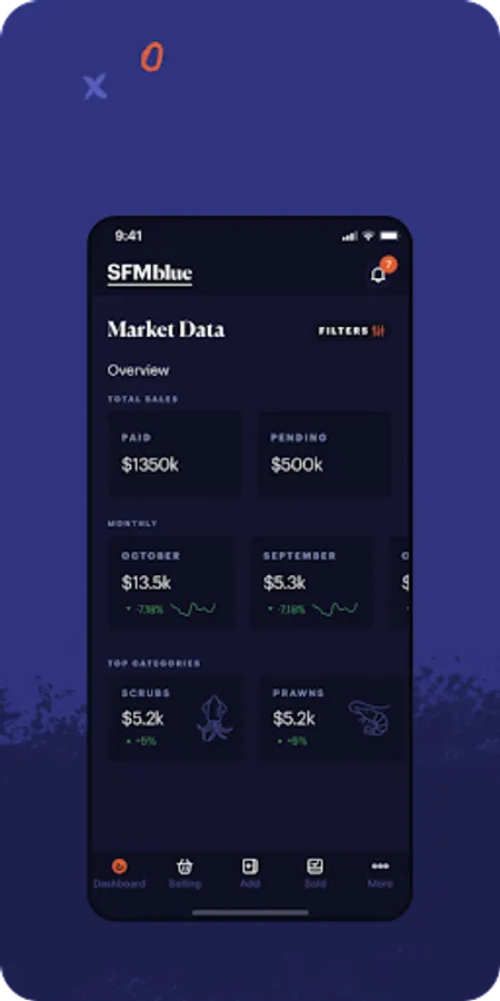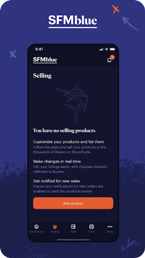 With SFM Blue, Sellers have the ability to distribute and sell seafood at their fingertips, whether it’s from out in the seas or back on land. Engineered to function with light limitations, eye sensitivities and signal issues whilst out at sea, this app is designed to thrive in all fishing environments.