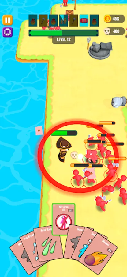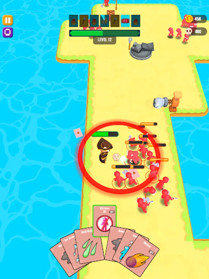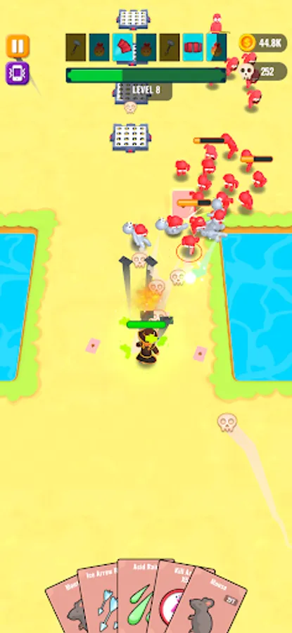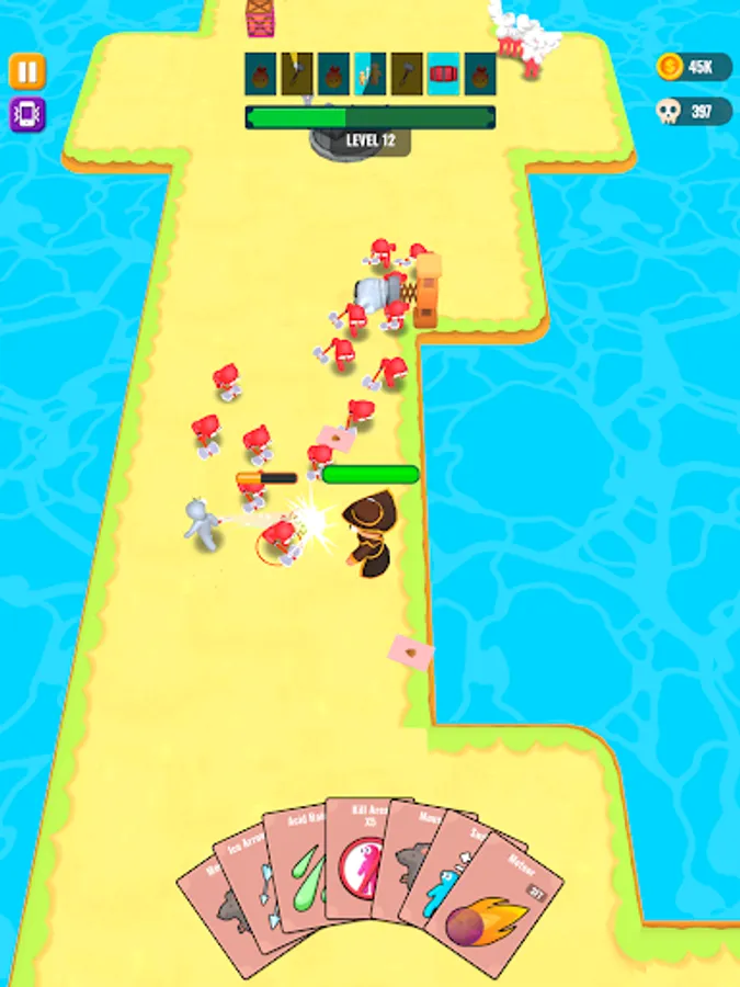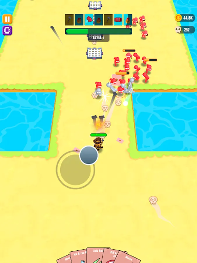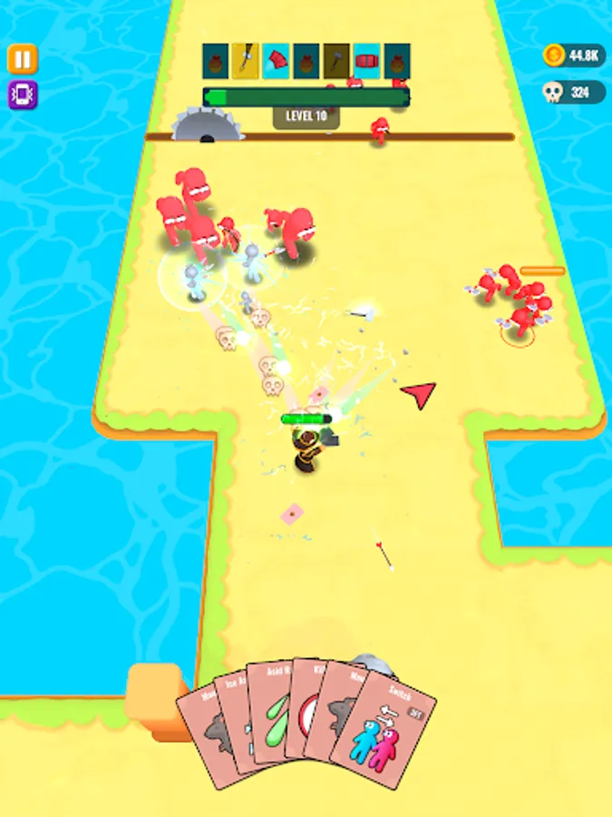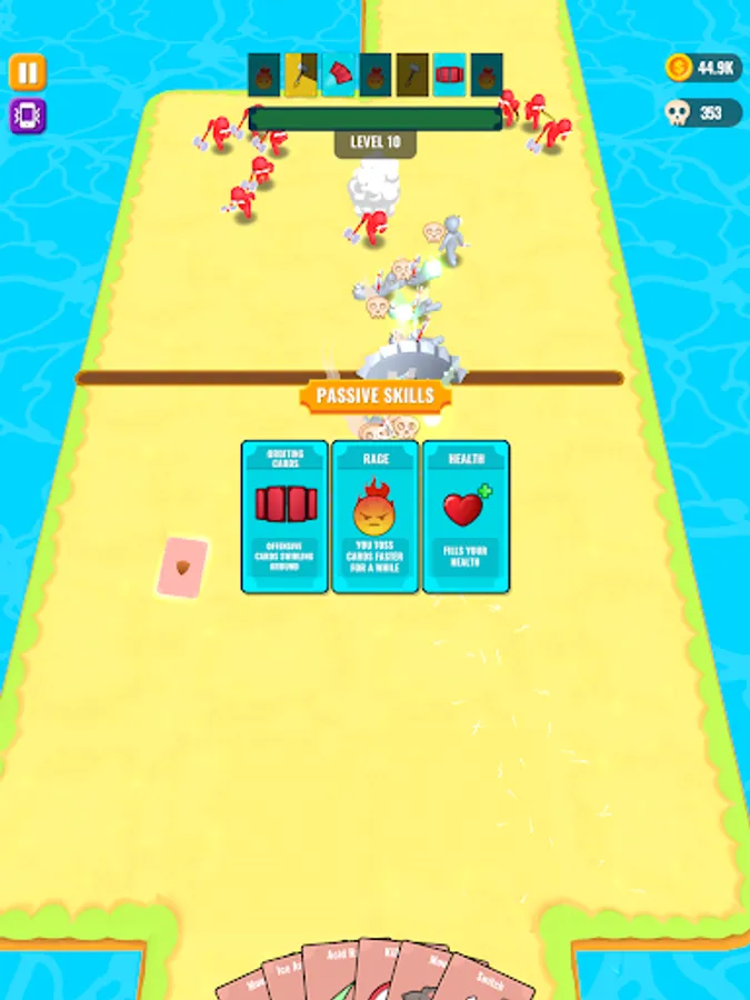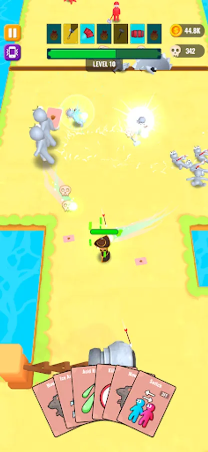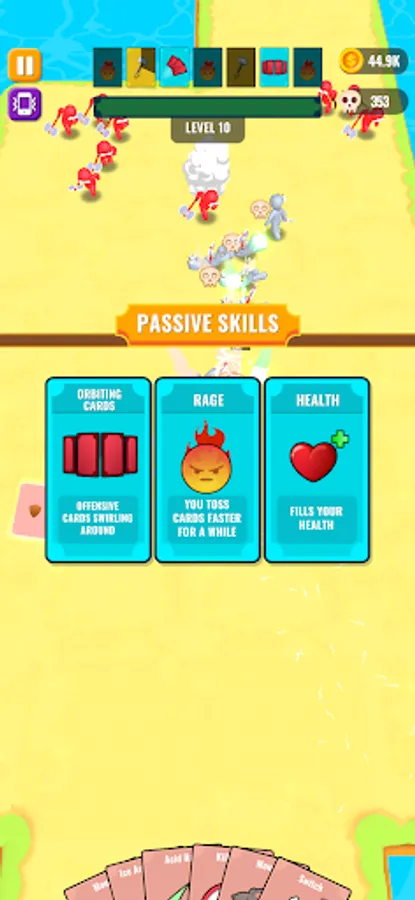 Throw cards to kill your enemies and collect dropped cards when they're dead.