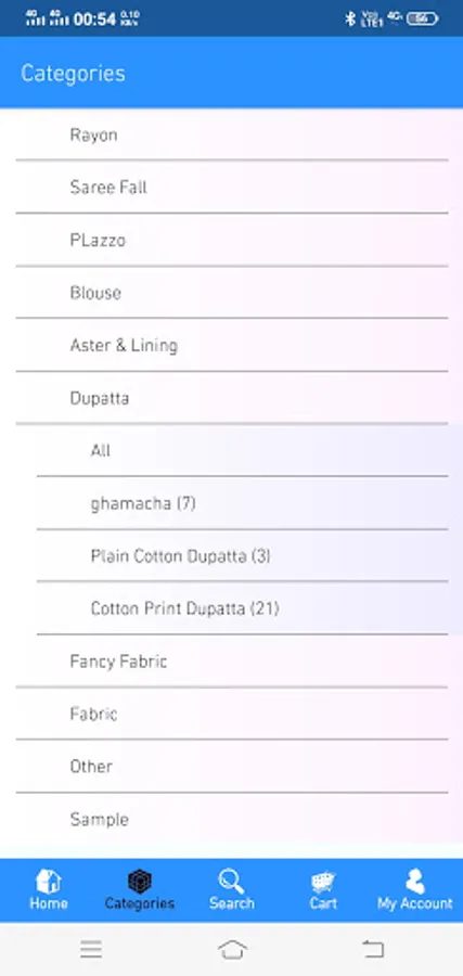 Product : saree fall, lining & aster, Rubia, Rayon, plaza, Fabric, Dupatta, Fancy fabric, blouse etc and dress materials.