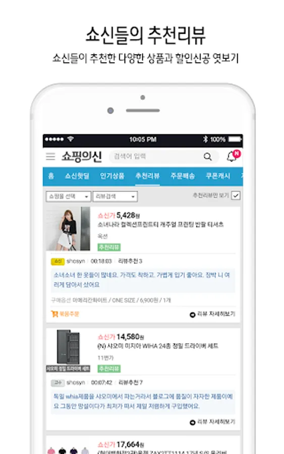 3) 쇼신들의 할인신공 및 상품평가 - 추천리뷰