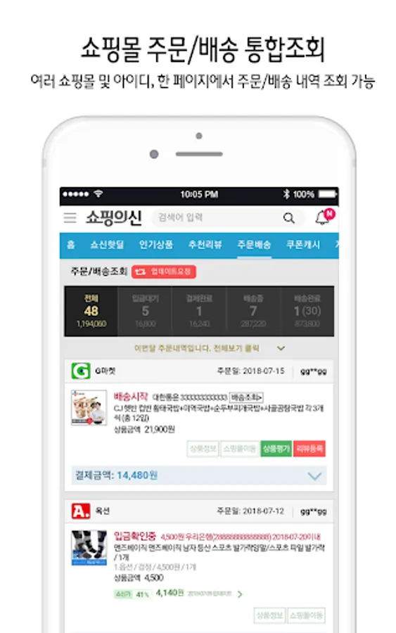 4) 쇼핑몰 주문/배송/택배 통합조회