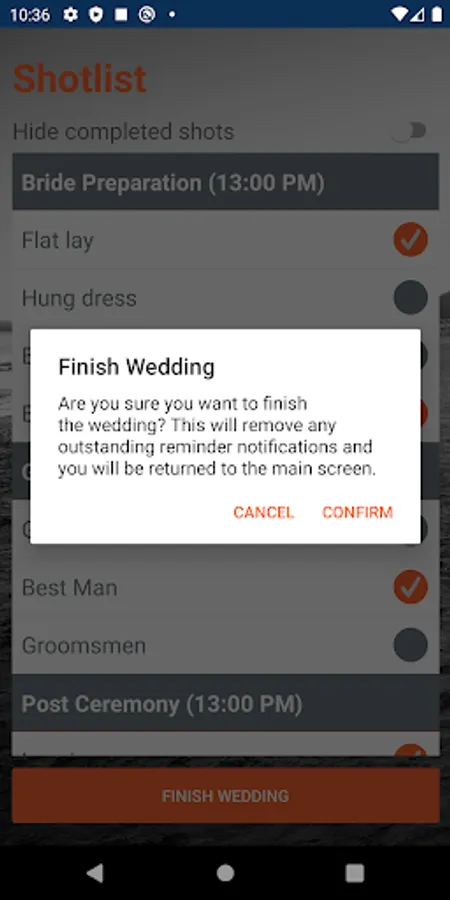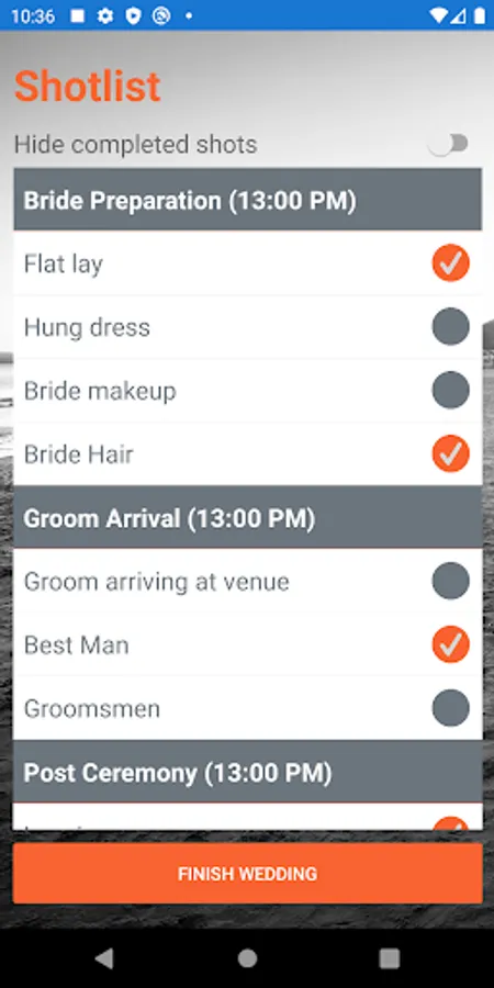 Create and collaborate with the happy couple to plan their perfect wedding photos using our web platform, and then execute on the day with our shot checklist and reminders in our mobile app.