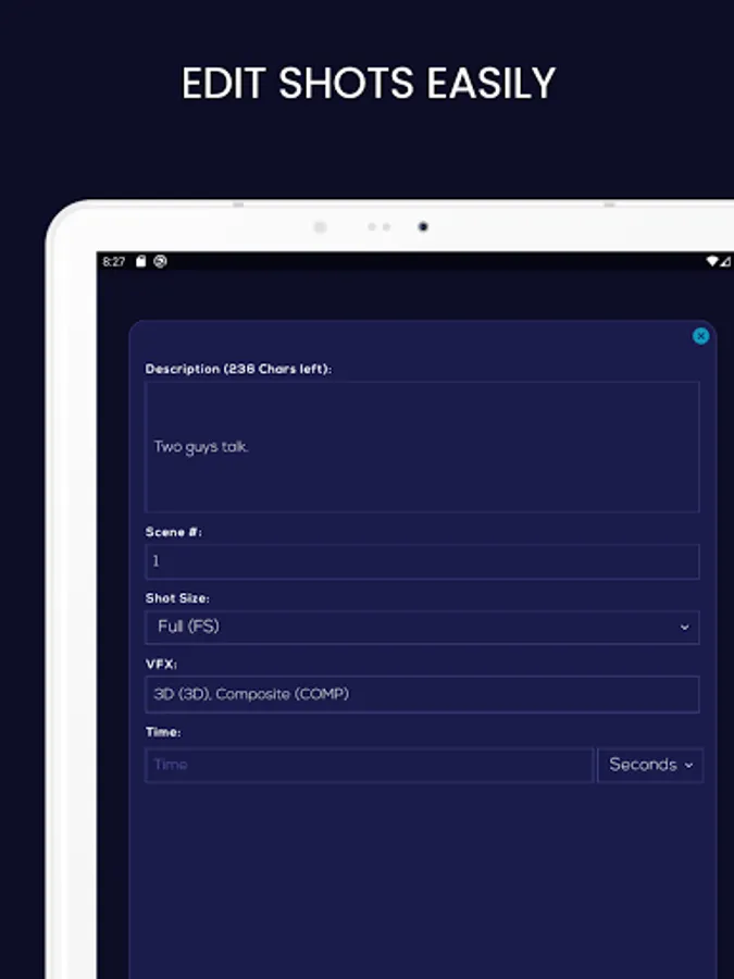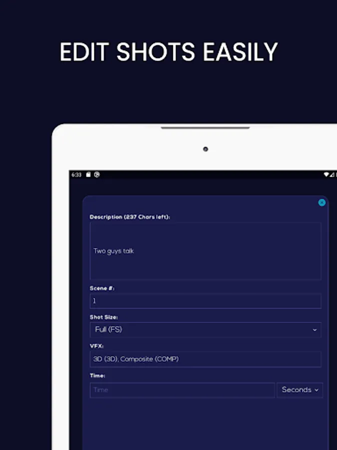VanguShotlist makes it easy to create, edit, and complete shots that need to be taken.