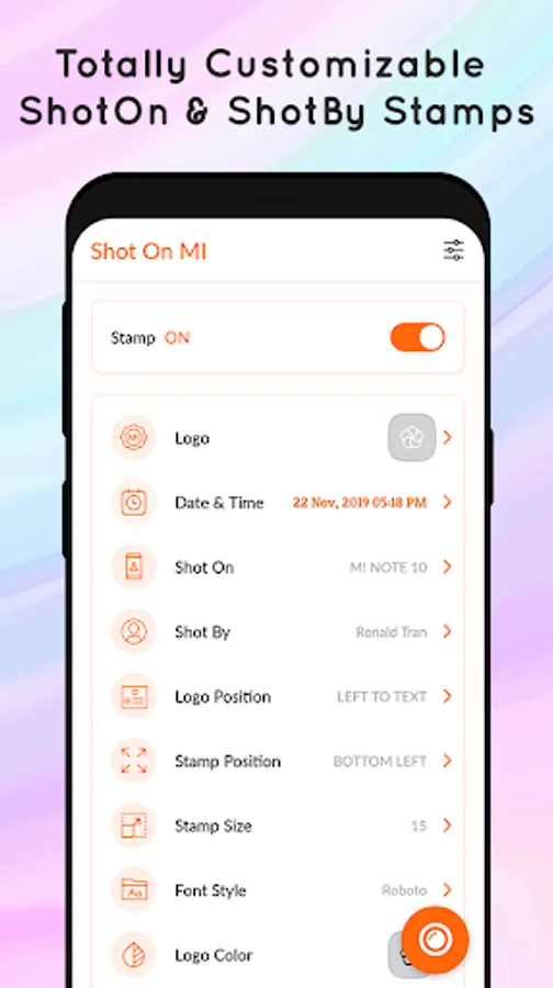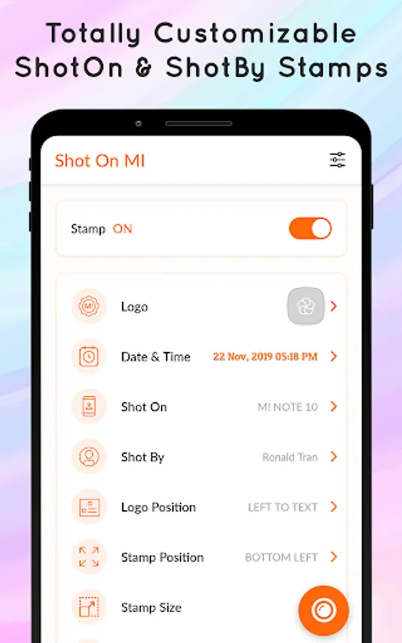 ✎ Shot On Stamp for Mi is very simple to use and by changing the settings, you can include the “Shot On” and “Shot By” watermark on photo.