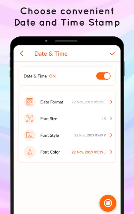 ✌ With attractive font styles present in this Auto Stamp Shot On for Mi application, choose the font style you like and also change the color you like.