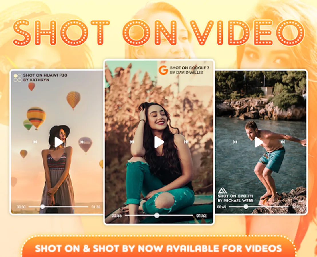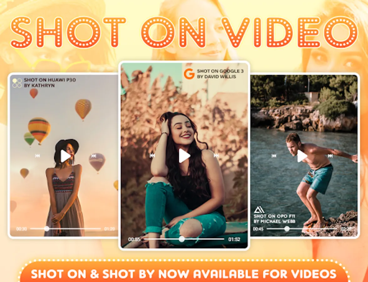 You must have surely used ShotOn Camera and ShotBy watermark tags on your favorite photos. To give more privilege to the same features, here, we’re “Introducing SHOT ON and SHOT BY tags for VIDEOS” with your favorite Brand Logo.