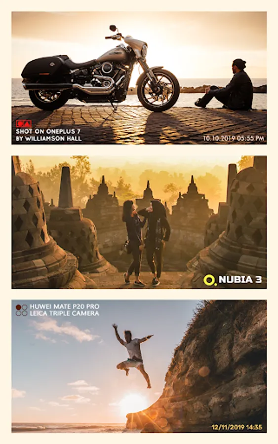 Show off your photography skills with your perfect device Camera by auto adding these stamps to your photos!