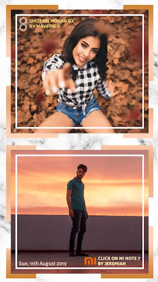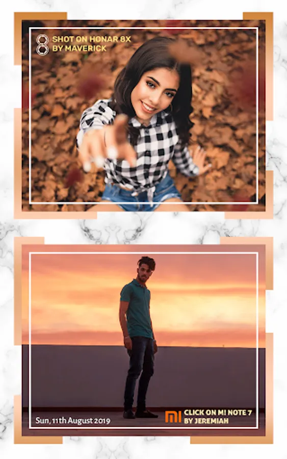 With ShotOn watermark Tags, make every Photo spunkier than before! ShotOn for Sony, Shot On for Samsung can likewise be engraved on your photographs with selected logo.