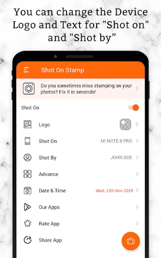 Purchased the latest smartphone? Doesn't have ShotOn highlight inbuilt? Relax! Download Shot On Stamp Photos with ShotOn Watermark Camera application and tweak these copyright labels. Benefit to add Shot On for Intex, ShotOn for Honor, and many others.