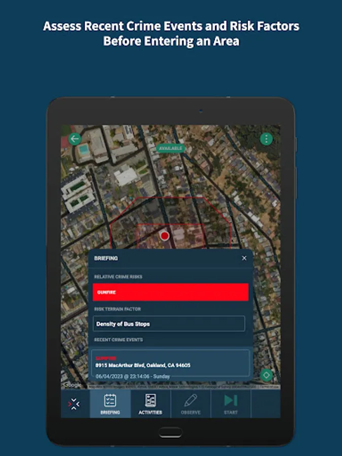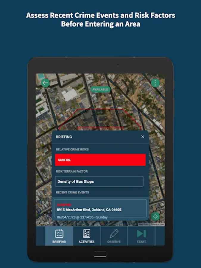 2) Police use it as a patrol and analyst tool to automate the daily identification of high-risk areas for Part 1 crimes and to plan directed patrols across an entire jurisdiction. With ResourceRouter, analysts and supervisors review pre-generated directed patrol assignments that ensure officers are at the right place at the right time to maximize crime prevention while also guarding against over and under-policing. Pre-patrol briefings provide situational awareness and recommended patrol tactics to officers, facilitating optimal outcomes despite limited staffing and resources.